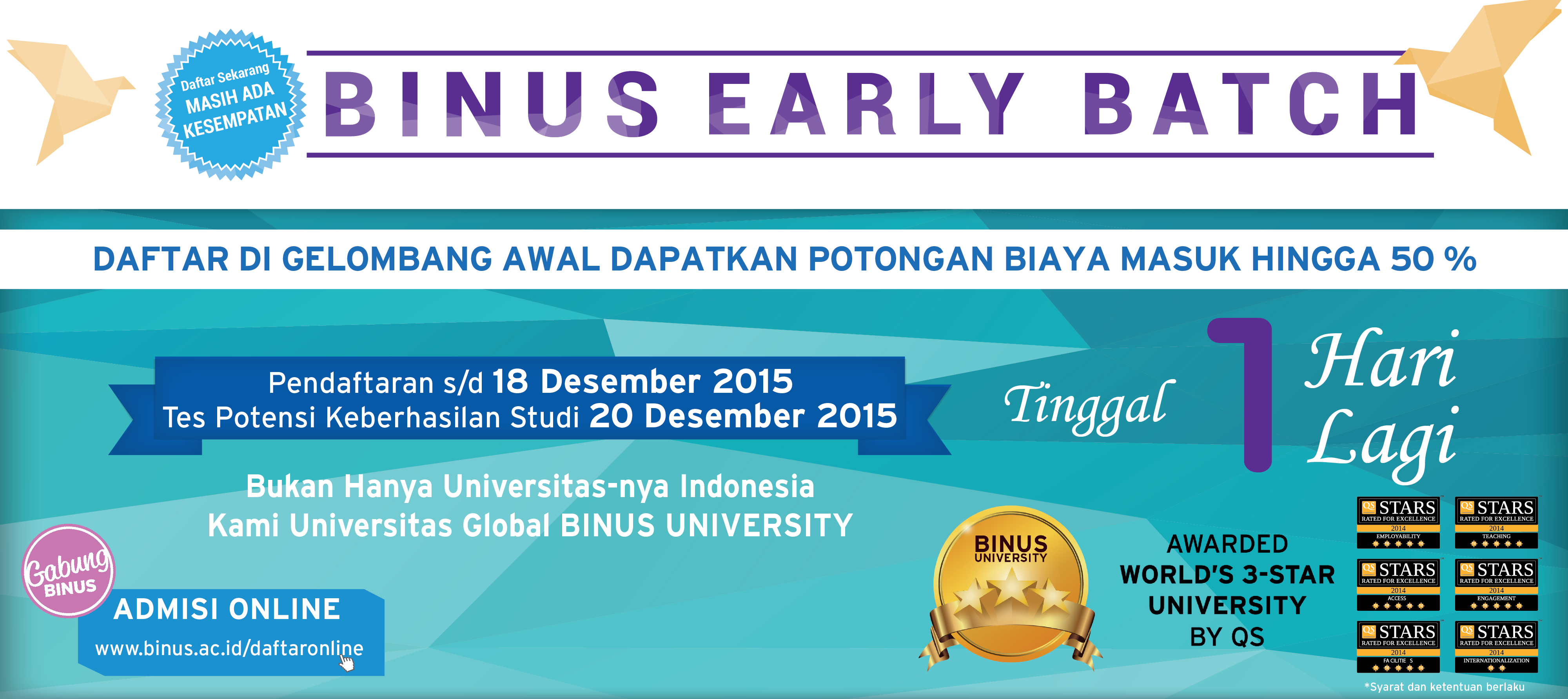 | Customer Service Admission Room, 1st Floor Anggrek Campus BINUS UNIVERSITY Jl. Kebon Jeruk Raya No. 27, Kebon Jeruk Jakarta Barat 11530, Indonesia Direct Line: (62 – 21) 53 69 69 69, 53 69 69 99 Fax.: (62-21) 535 0655 E-mail: pmb@binus.edu |