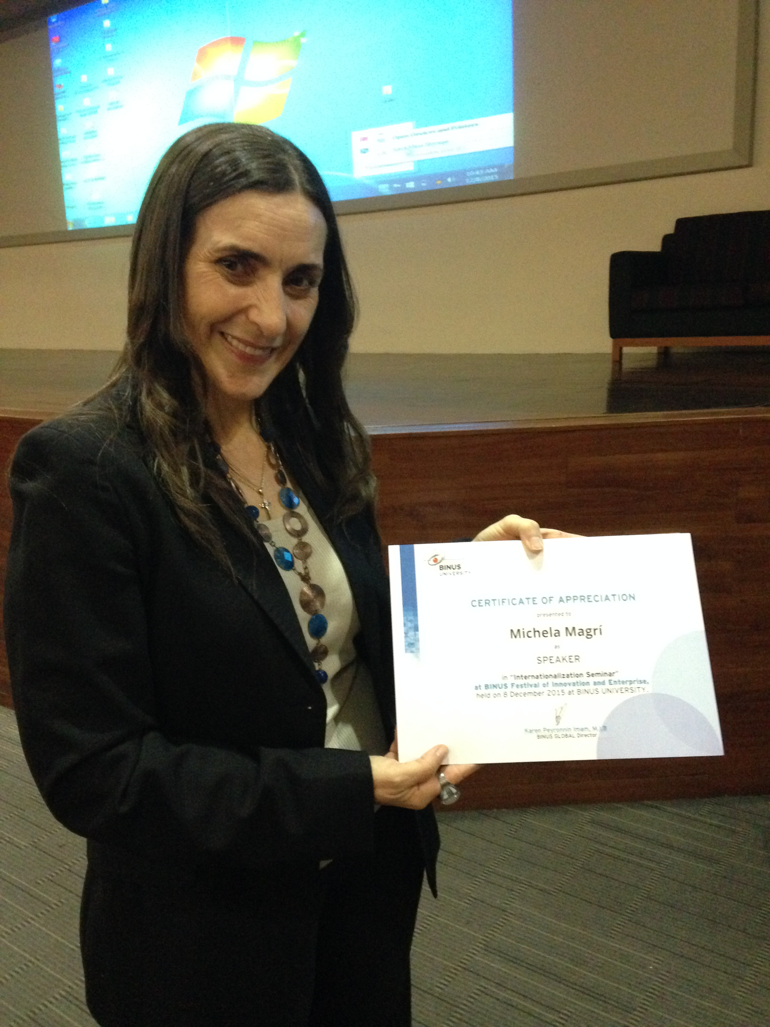 “Saya percaya bahwa seminar ini akan sangat berguna sekali bagi karir mahasiswa kedepannya. Mereka dapat lebih memahami budaya Italia dan dapat memiliki kesempatan untuk bekerja di perusahaan global terutama di Italia,” ucap Michela (8/12).