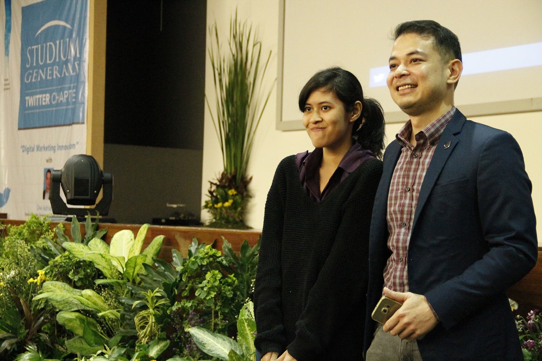 Mengambil tema “Digital Marketing Innovation” Studium Generale Twitter Chapter, yang dibawakan langsung oleh Dwi Adriansah selaku Head of Business Development, Twitter South East Asia) mahasiswa BINUS diajak untuk melihat perkembangan dunia marketing konvensional yang sudah mulai beralih ke dunia digital marketing.