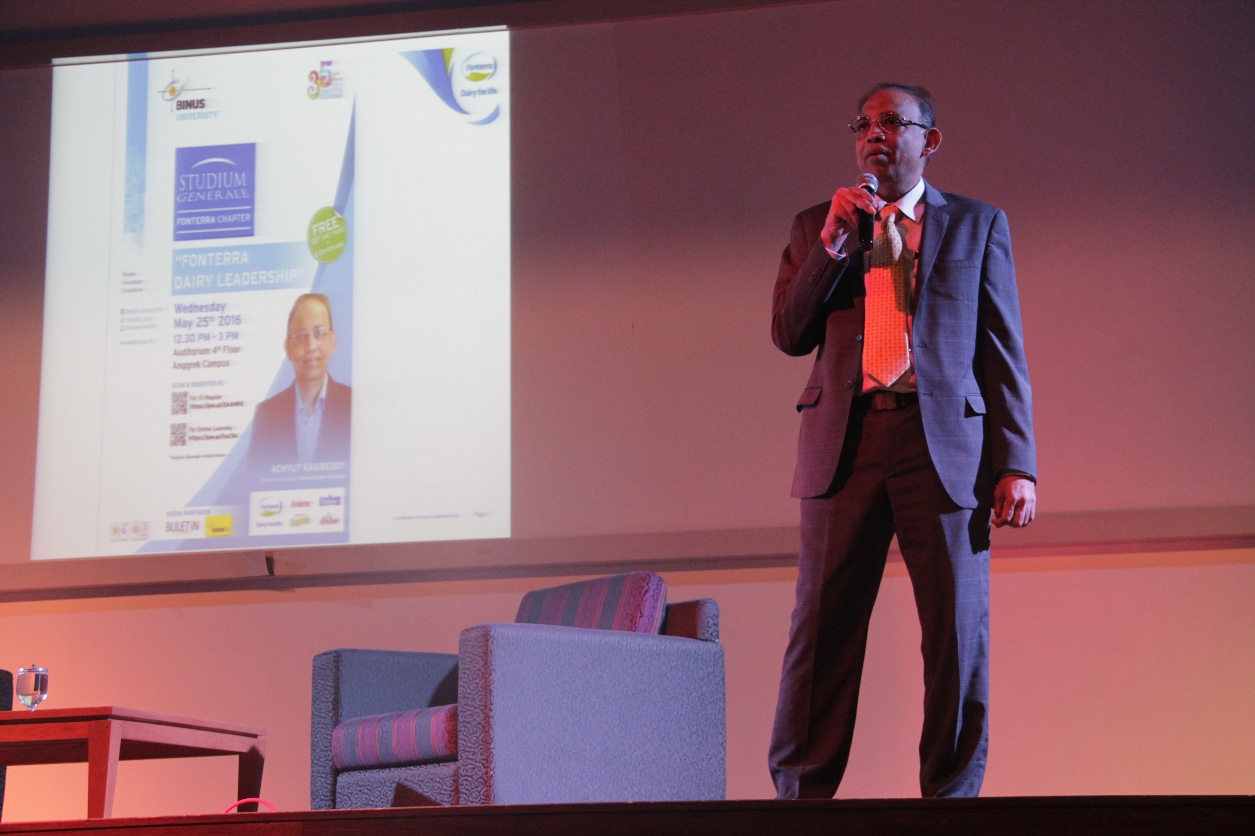 Sebuah kehormatan bagi BINUS UNIVERSRITY untuk bisa menghadirkan Achyut Kasireddy sebagai pembicara di Studium Generale kali ini. Achyut Kasireddy merupakan President Director of Fonterra Brand Indonesia.