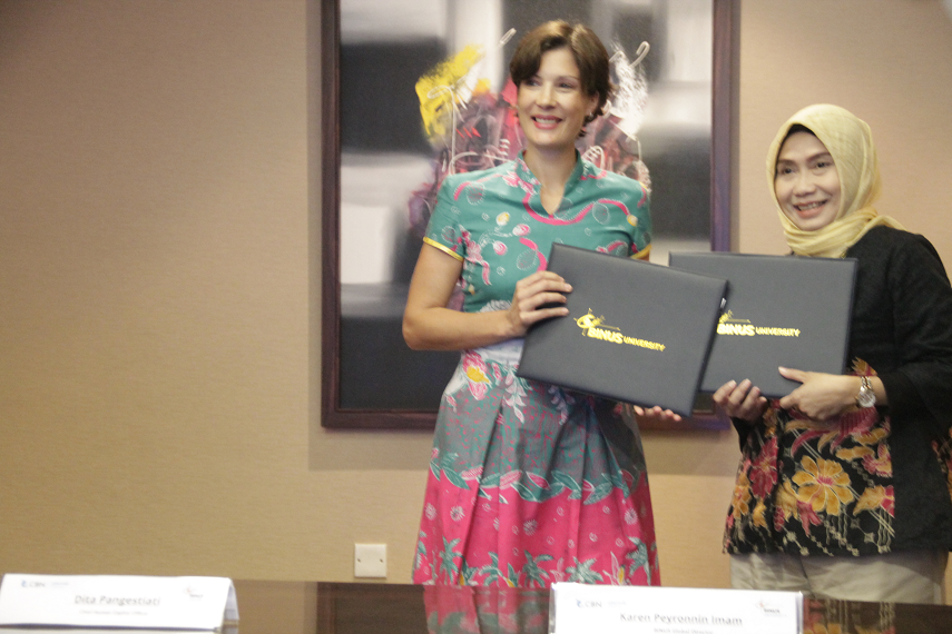 BINUS dan CBN GROUP telah menandatangi kerja sama pada tanggal 29 Juli 2016. Kerja sama tersebut akan dilakukan dalam empat bidang yaitu Sharing Knowledge, Internship Program, Career Development dan Research and Business Development. Tujuan dari kerja sama ini adalah untuk minimalisir ‘jarak’ antara perguruan tinggi dan perusahaan. Kesepakatan antara BINUS dengan CBN sebenarnya sudah berjalan dalam bidang Internship dan Career Development. Salah satu kerja sama yang unik adalah business development, dimana mahasiwa-mahasiswi akan diberi kesempatan untuk membuat start-up dalam membuat bisnis yang nantinya yang terpilih akan mempresentasikan bisnisnya di depan CEO CBN GROUP.