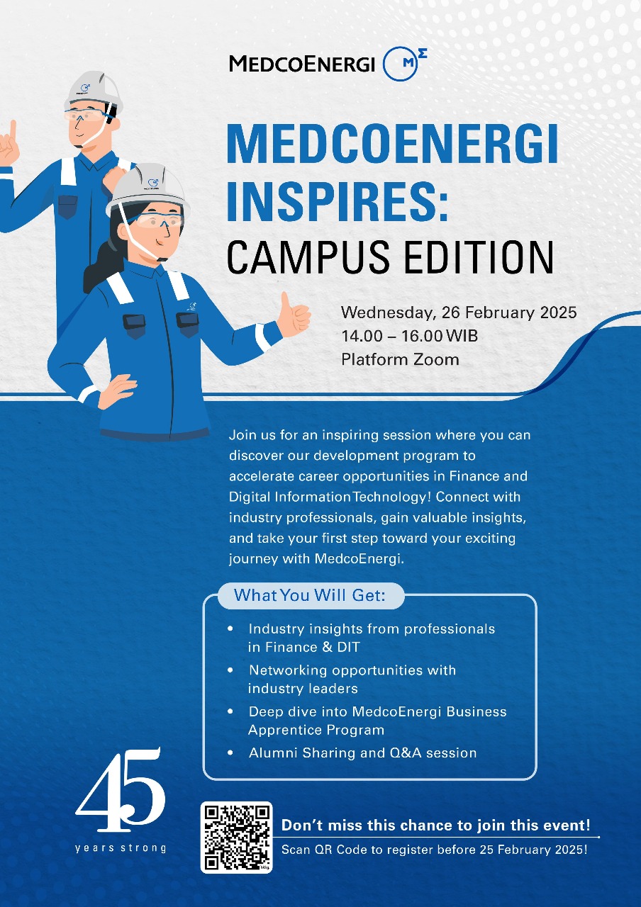 Don't miss this golden opportunity to connect with industry professionals and gain valuable insights at MedcoEnergi Inspires: Campus Edition!