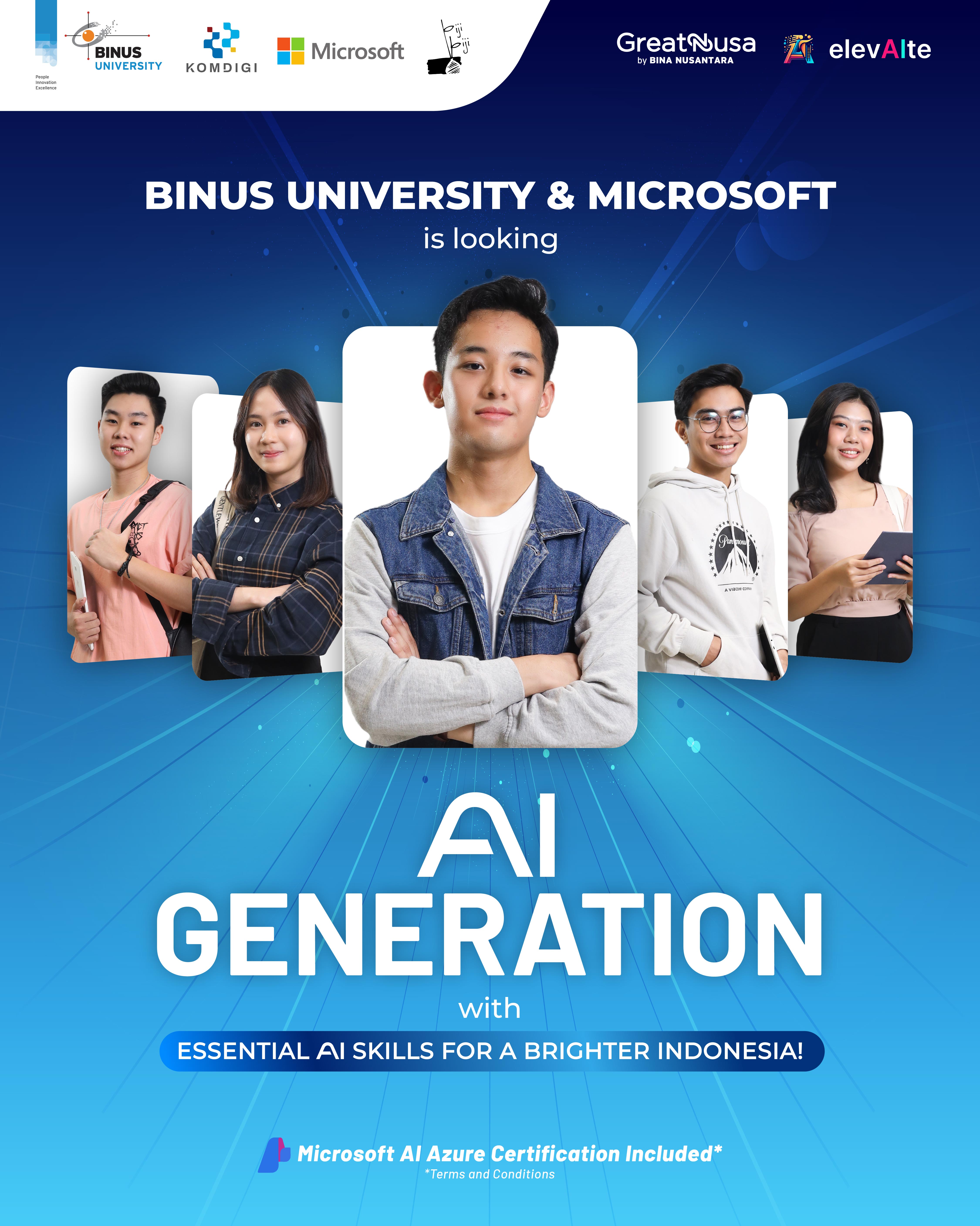 BINUS UNIVERSITY & Microsoft sedang mencari generasi muda yang siap menguasai AI skills untuk membangun masa depan Indonesia yang lebih cerah.