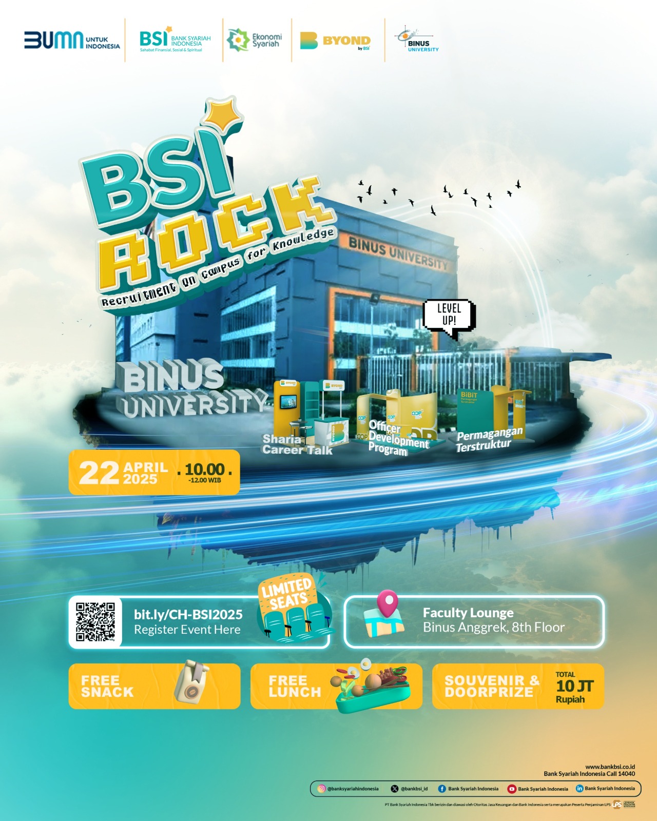 BSI kembali hadir dalam event spesial BSI ROCK (Recruitment On Campus for Knowledge) di BINUS UNIVERSITY!