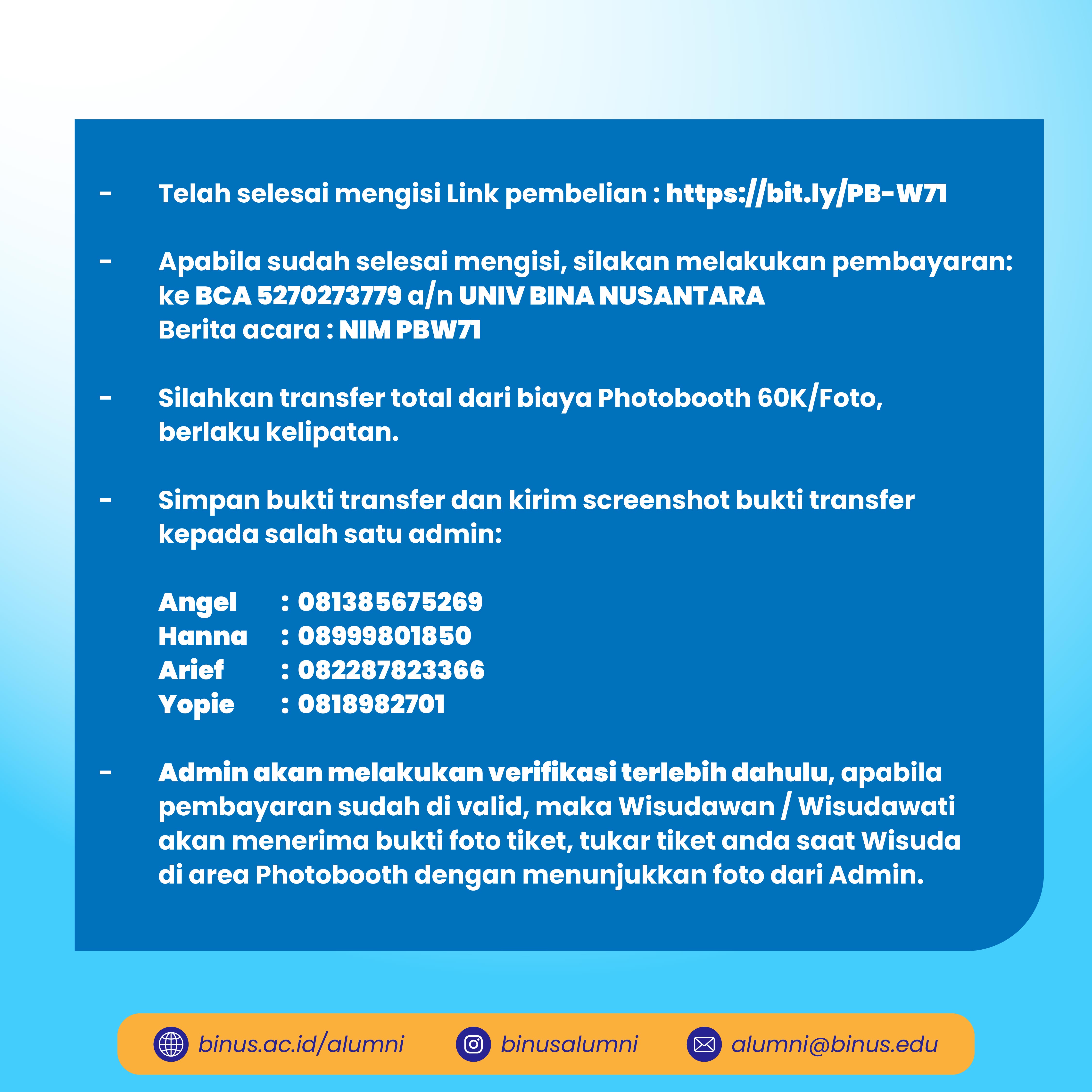 Berikut tata cara pembelian tiket Photo Booth BINUS Alumni:
