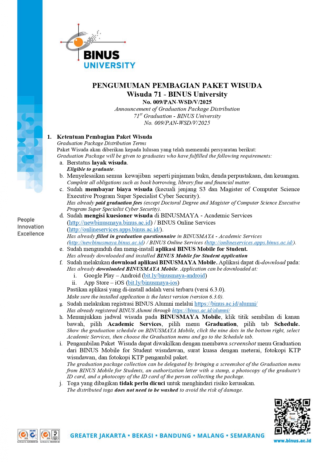 Selamat kepada seluruh wisudawan dan wisudawati BINUS University!
