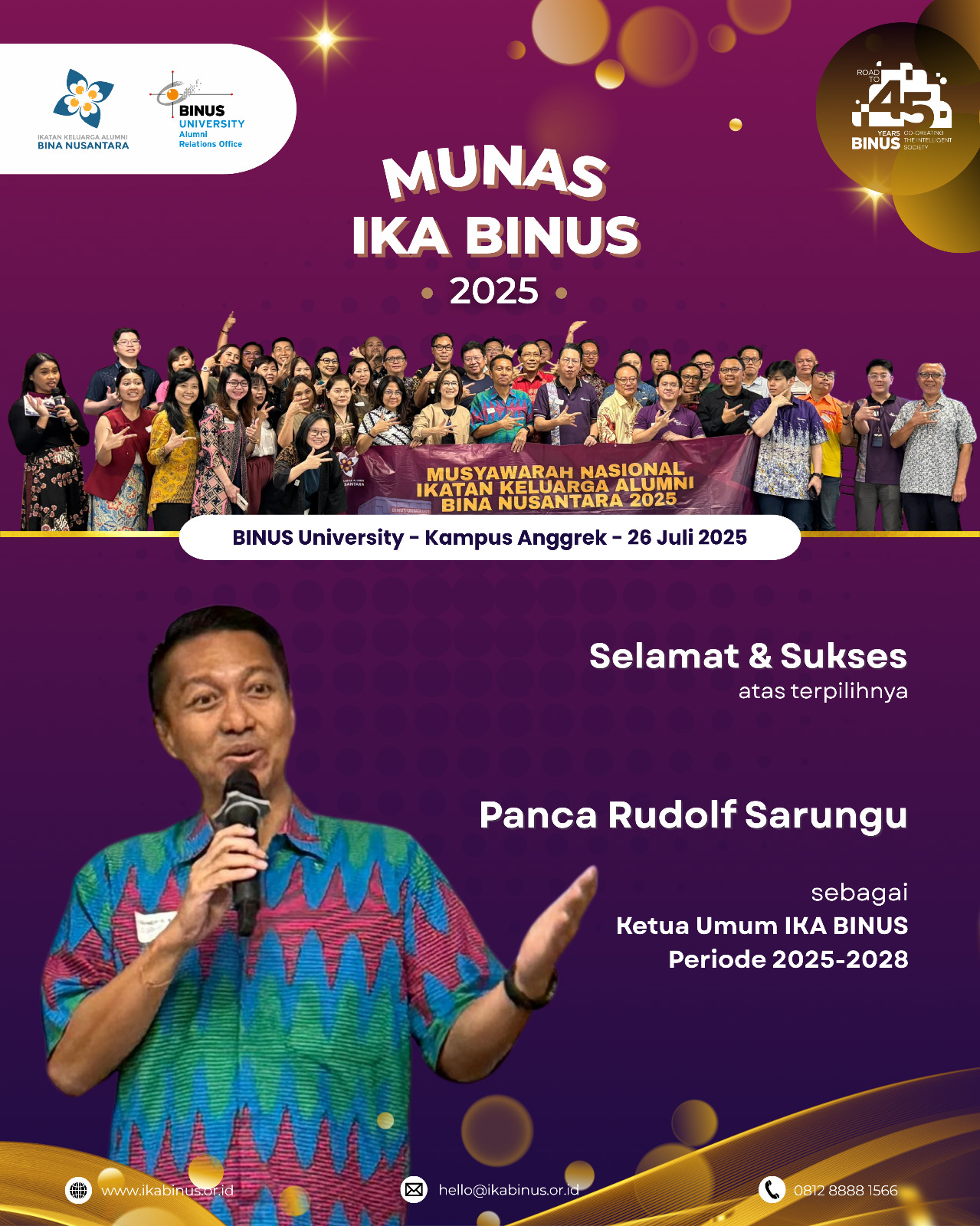 Selamat kepada Bapak Panca Rudolf Sarungu atas kepercayaan alumni sebagai Ketua Umum IKA BINUS 2025–2028.