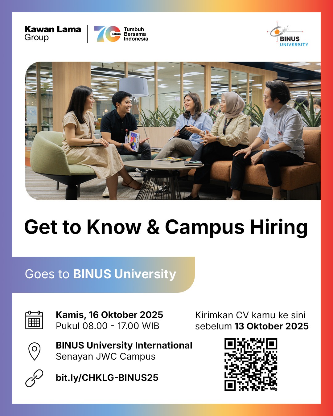 Join us for the Kawan Lama Group Campus Hiring 2025 at Universitas Bina Nusantara!