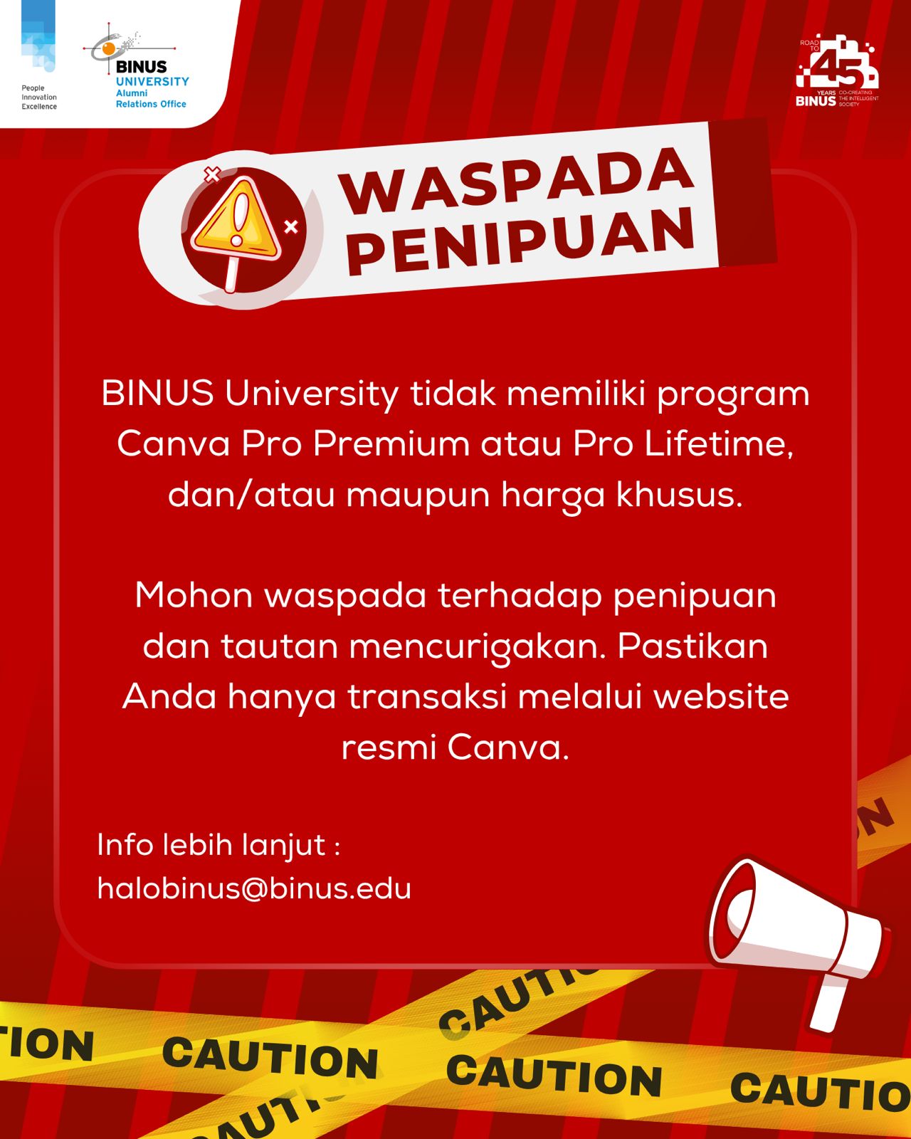 Info lebih lanjut : halobinus@binus.edu
