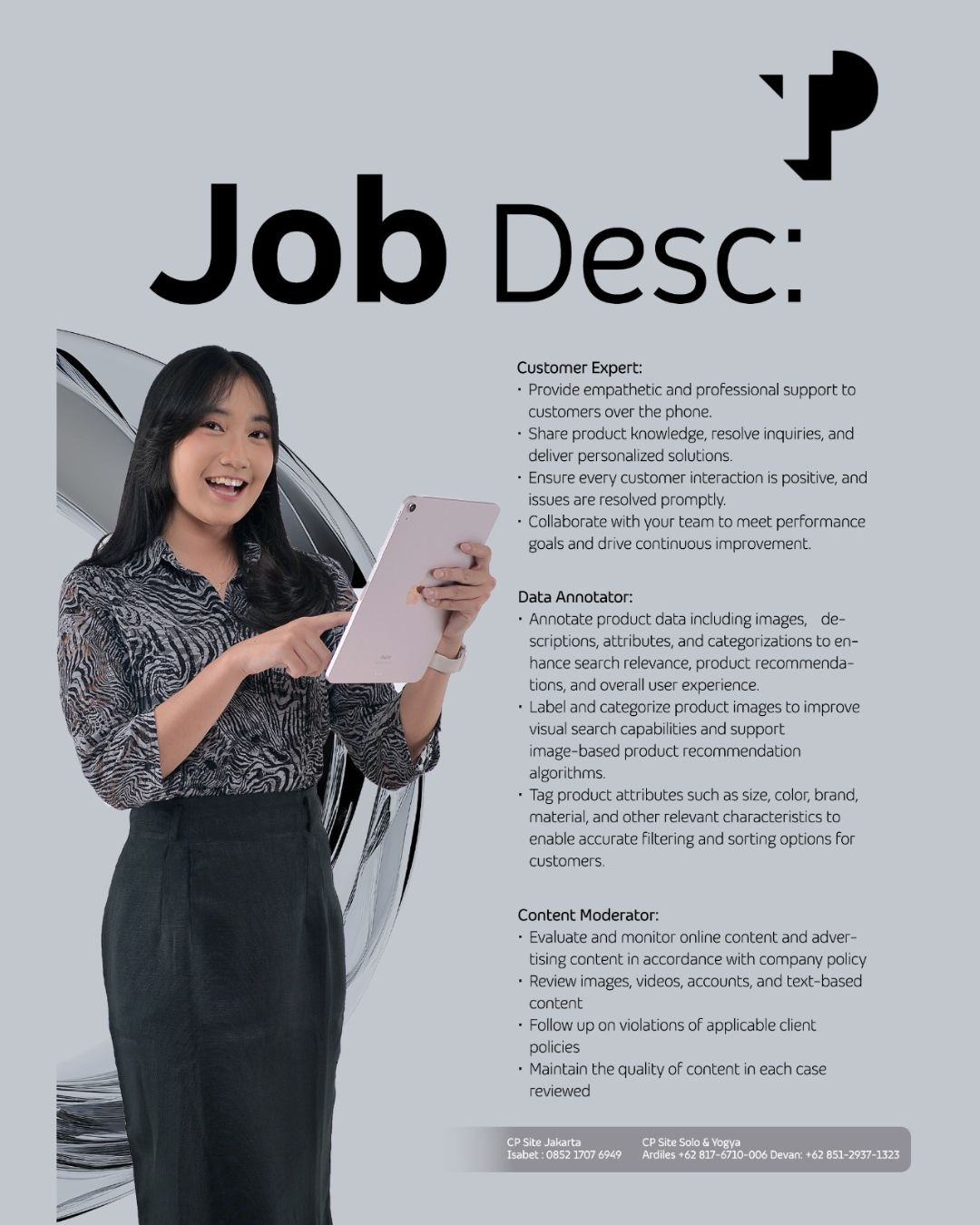 TP Indonesia membuka kesempatan berkarier bagi kamu yang memiliki kemampuan bahasa Jepang untuk bergabung sebagai Japanese Speaker / Support dengan penempatan Jakarta.