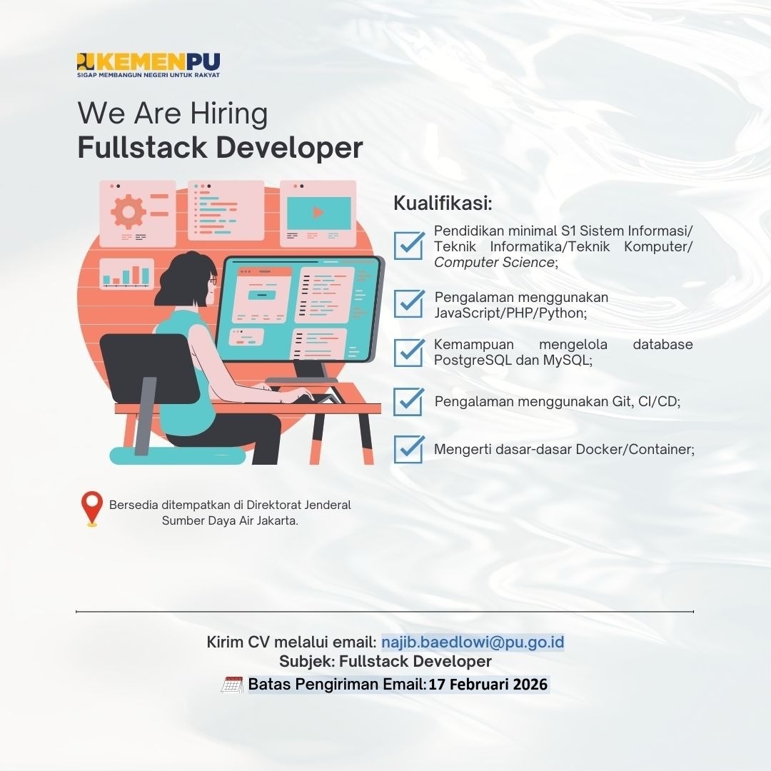 Kementerian PUPR membuka kesempatan bagi talenta terbaik untuk bergabung sebagai Fullstack Developer.