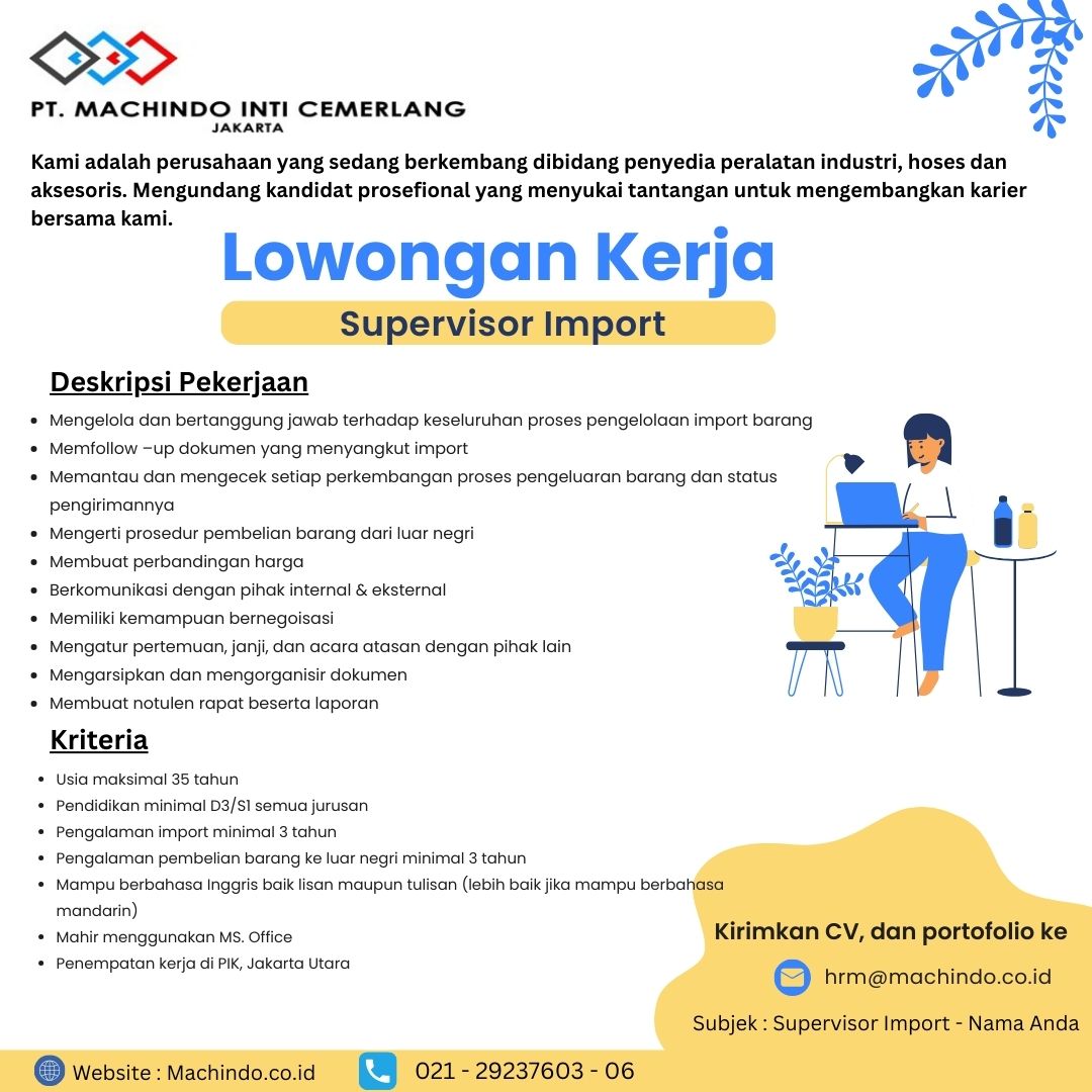 Kami membuka lowongan untuk posisi Sales Marketing (Perempuan) dan Supervisor Import.