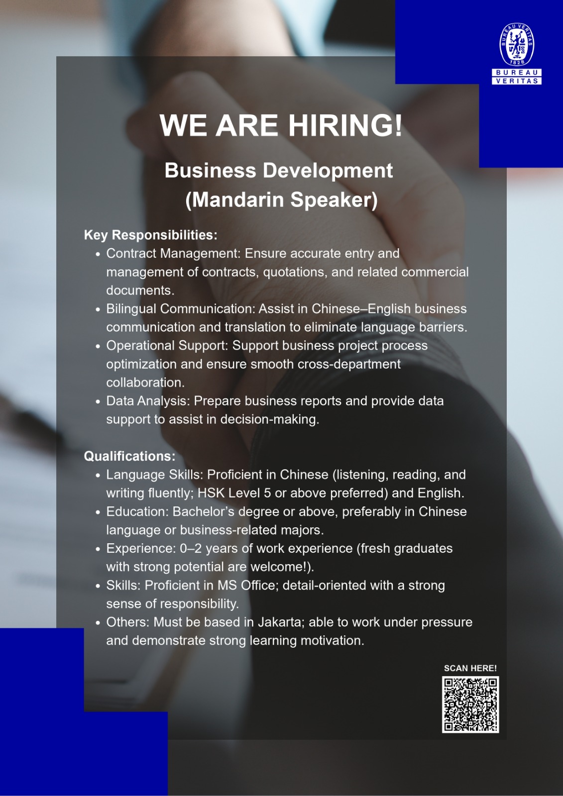 Apply today: https://careers.bureauveritas.com/Indonesia/job/Jakarta-Business-Development-%28Mandarin-Speaker%29-Jaka/1283248701/