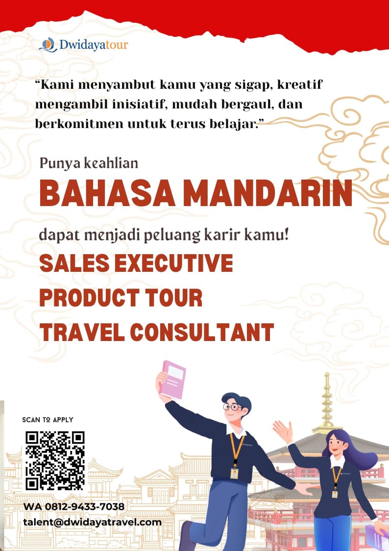 #Dwidayatour #WeAreHiring #JobHiring #LowonganKerja #KarierPariwisata #TravelIndustry #SalesExecutive #TravelConsultant #ProductTour #BahasaJepang #BahasaMandarin #CareerOpportunity #BINUSAlumni #AlumniBINUS #InfoLoker #lokerjakarta