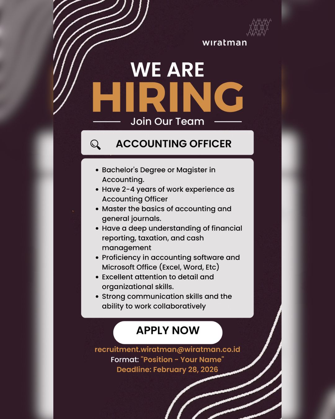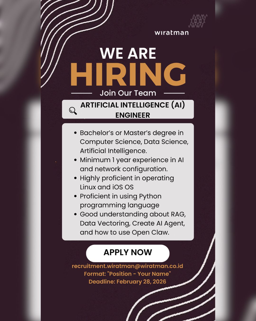 #Hiring #JobVacancy #LowonganKerja #Wiratman #Accounting #AIEngineer #ITJobs #CareerOpportunity #BinusAlumni