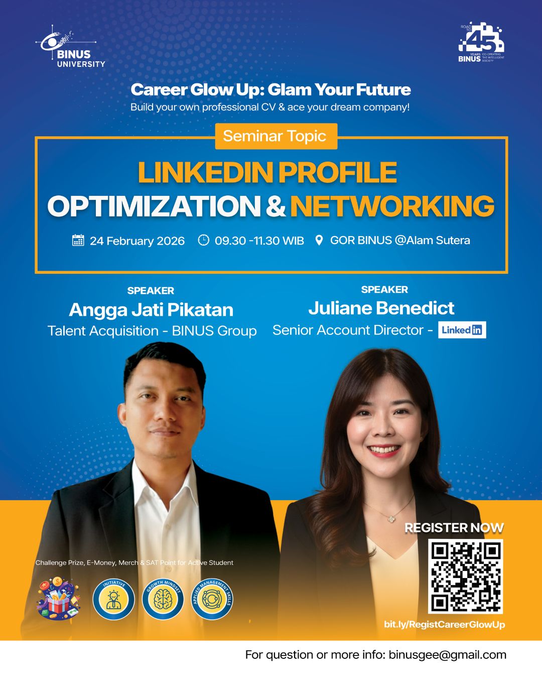 Punya skill hebat tapi profil LinkedIn belum maksimal? Yuk, ubah profilmu jadi magnet peluang di Career Glow Up: Glam Your Future. Belajar langsung dari: