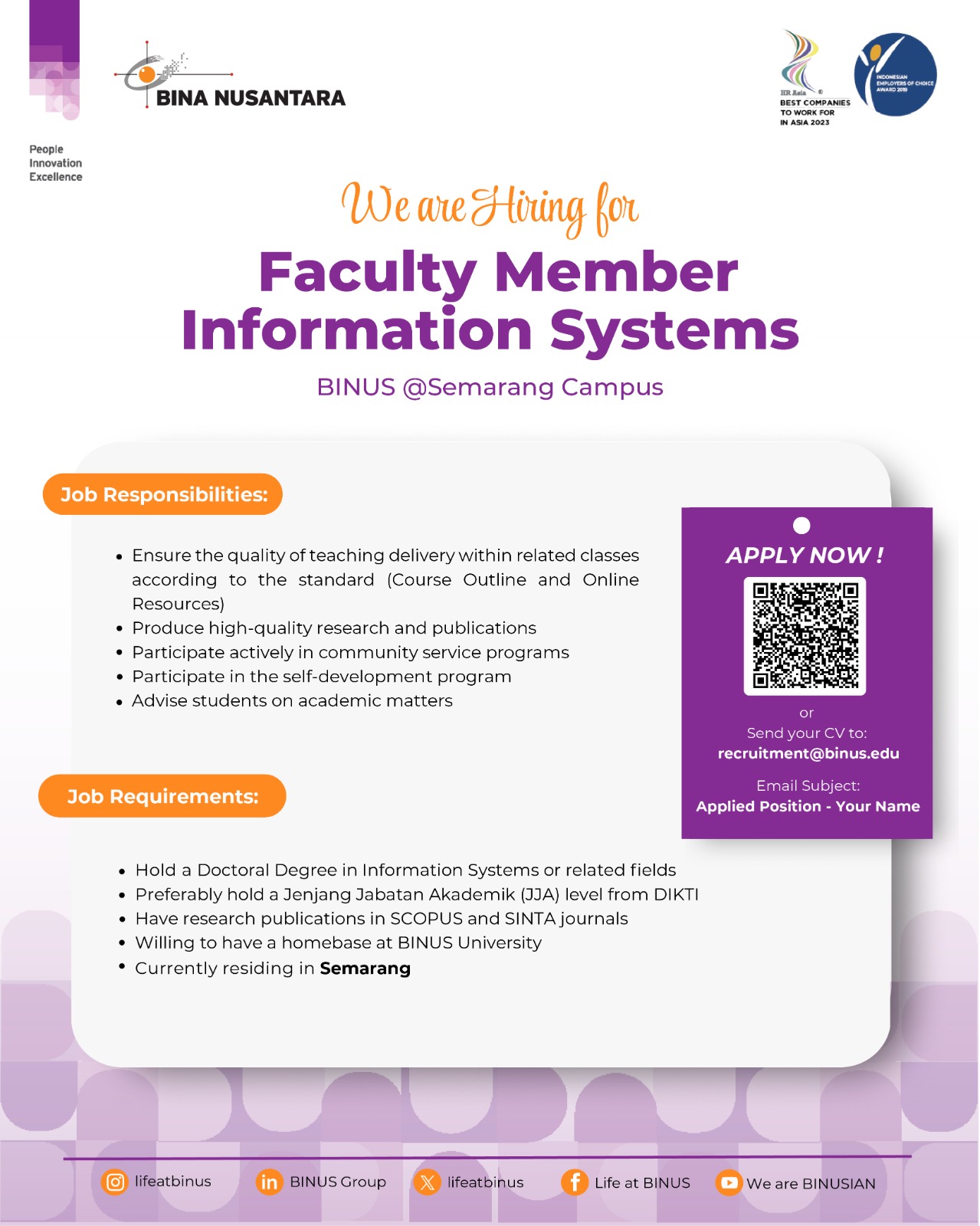 [JOB VACANCY] - BINUS@SEMARANG