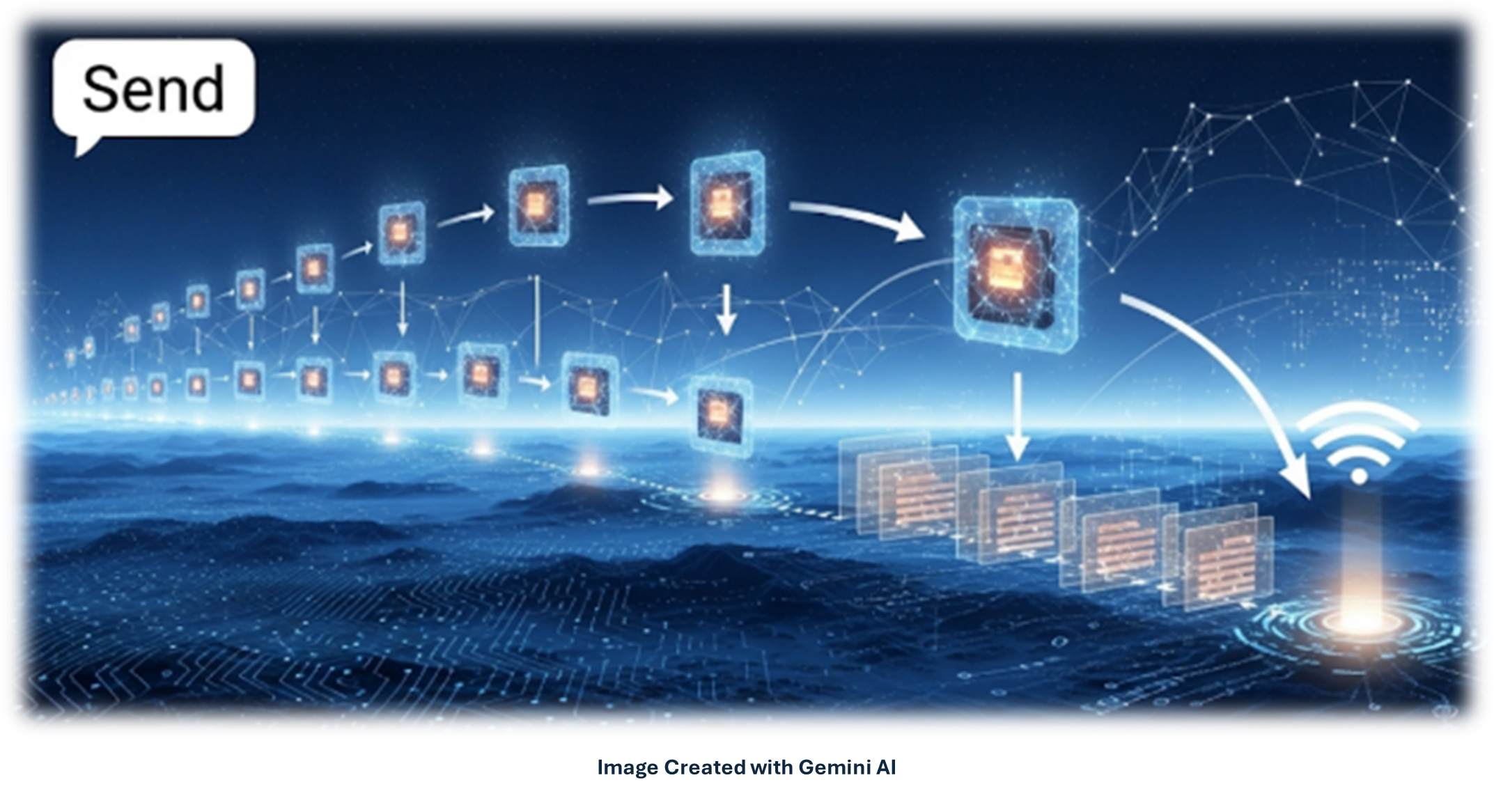 Setelah di-enkripsi, pesan akan dikirim melalui jaringan internet. Data tersebut akan melewati berbagai “jalur” digital, seperti Wi-Fi, jaringan seluler, hingga kabel bawah laut jika pesannya dikirim ke negara lain. Selama perjalanan itu, pesan bisa melewati banyak server dan perangkat jaringan yang berfungsi sebagai pengarah atau “penjaga gerbang”. Semua ini terjadi sangat cepat, bahkan dalam waktu kurang dari satu detik. Tapi perlu diketahui, jika koneksi internet sedang lambat atau tidak stabil, perjalanan pesan ini bisa terhambat. Itulah sebabnya kadang pesan terlihat seperti masih “pending” atau belum terkirim saat sinyal internetmu lemah.