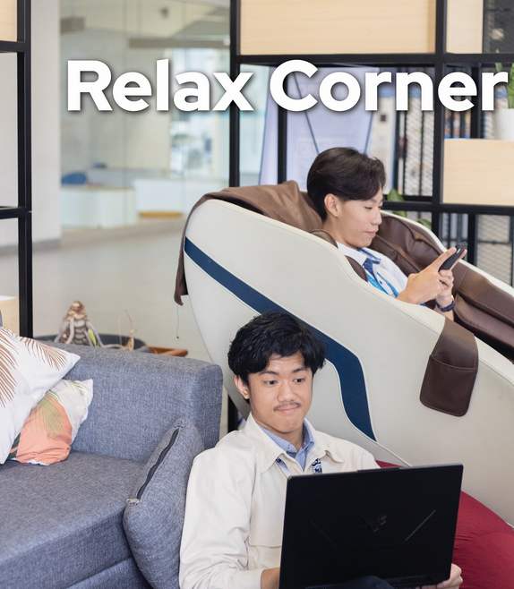 The Relax Corner at BINUS @Bandung is a dedicated space created to support students’ comfort and well-being amid their busy academic schedules. Designed with a calm and cozy atmosphere, this area allows students to take a break, release stress, and recharge both physically and mentally. It features a massage sofa to help ease muscle tension, comfortable bean bags for casual lounging or light reading, and a coffee machine to keep students refreshed and energized throughout the day. Whether waiting for the next class, taking a short study break, or simply needing a moment to relax, the Relax Corner offers a welcoming environment that encourages balance, productivity, and a healthier campus life.