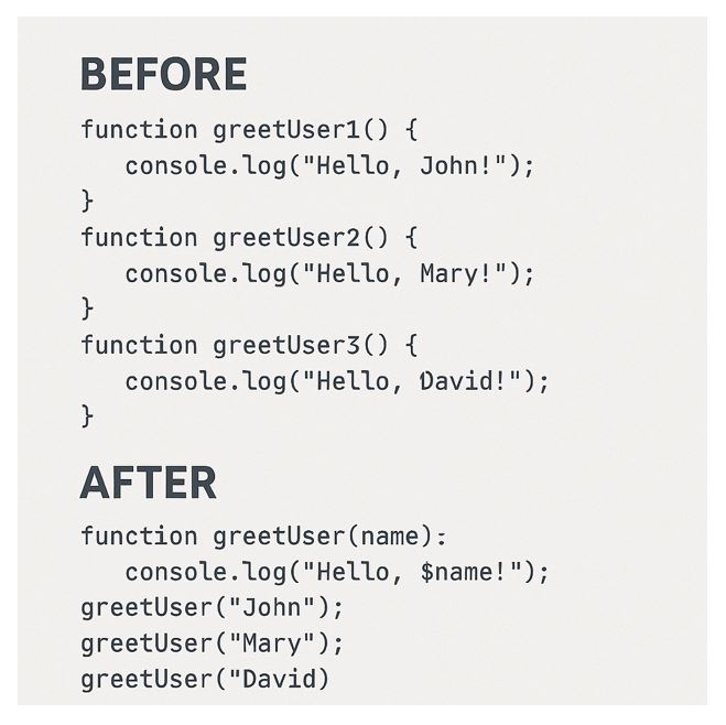 Agar dapat mengimplementasi Clean Code dengan baik, kita perlu mengetahui beberapa prinsip-prinsip yang dimiliki Clean Code. Salah satu prinsipnya adalah DRY (Don’t Repeat Yourself), yang dimana memberitahu kita bahwa penting untuk tidak menaruh kode yang sama berulang-ulang pada beberapa tempat. Kita dapat menaruh sepotong kode ke dalam fungsi atau variabel agar mudah dalam pengelolaan dan perubahan suatu hari [2].