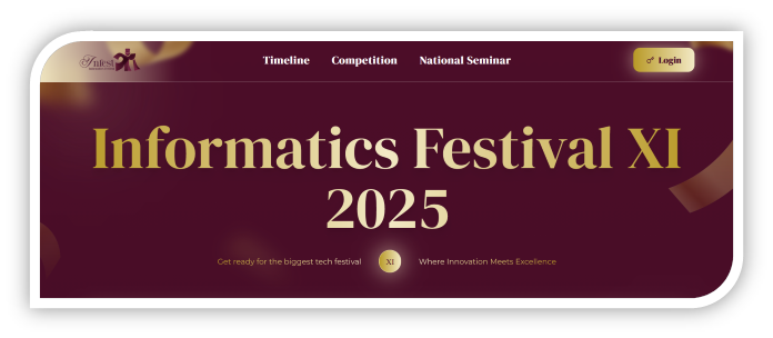 - Himpunan Mahasiswa Informatika Universitas Syiah Kuala, “Empowering the Digital Generation through INFEST XI 2025 Competition,” LinkedIn HMIF USK. 2025. URL: https://id.linkedin.com/company/himpunan-mahasiswa-informatika-universitas-syiah-kuala.