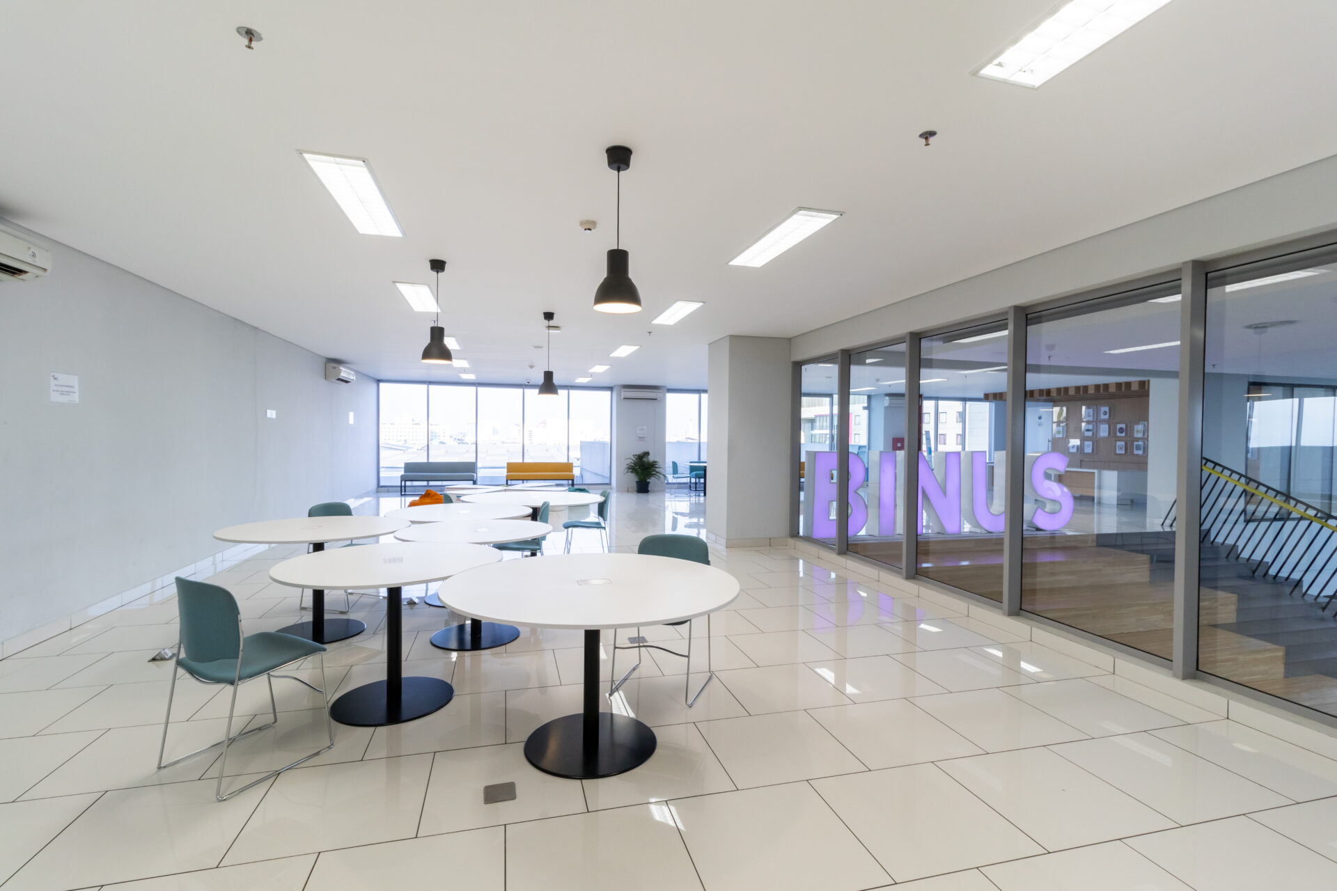 The Student Lounge at BINUS @Bandung offers a comfortable and inviting environment for students to relax, study, and socialize between classes. Equipped with a variety of tables, chairs, and seating arrangements, the lounge provides flexible spaces for individual study, group discussions, or casual gatherings with friends. It is designed to support both academic collaboration and informal interactions, fostering a sense of community and connection among students.