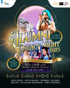 Bandung, 25 Oktober 2025 – Graha Mekar Wangi berubah jadi epicenter koneksi dan nostalgia! Alumni Legacy Night 2025 sukses digelar untuk menyatukan kembali Binusian B21-B25 dari Prodi CP, CS, DKV, dan DI. Dengan tema “Honoring Our Past, Inspiring Our Future”, acara ini bukan sekadar nostalgia, tapi juga suntikan semangat untuk masa depan.