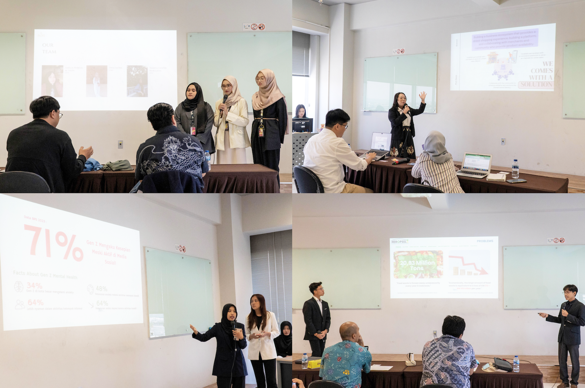 Acara dibuka dengan sambutan dari Bapak Ono Supriadi, S.IP., MBA., Ph.D., Kepala Program Studi Creativepreneurship. Dalam sambutannya, beliau memberikan motivasi kepada mahasiswa untuk terus berinovasi dan menciptakan solusi yang relevan bagi kebutuhan masyarakat serta industri. - Sesi Business Pitch