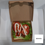 sandwich dengan konsep yang unik, perpaduan antara daging yang dimasak teriyaki, sayur, dan roti ditambah saus mayonaise dan sambal semakin terlihat menarik