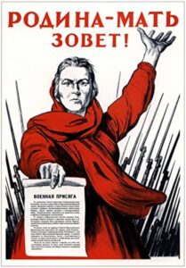 - Simbol Nasional: Poster menampilkan seorang wanita yang mewakili “Ibu Pertiwi” Rusia, yang merupakan simbol kuat bagi identitas nasional.