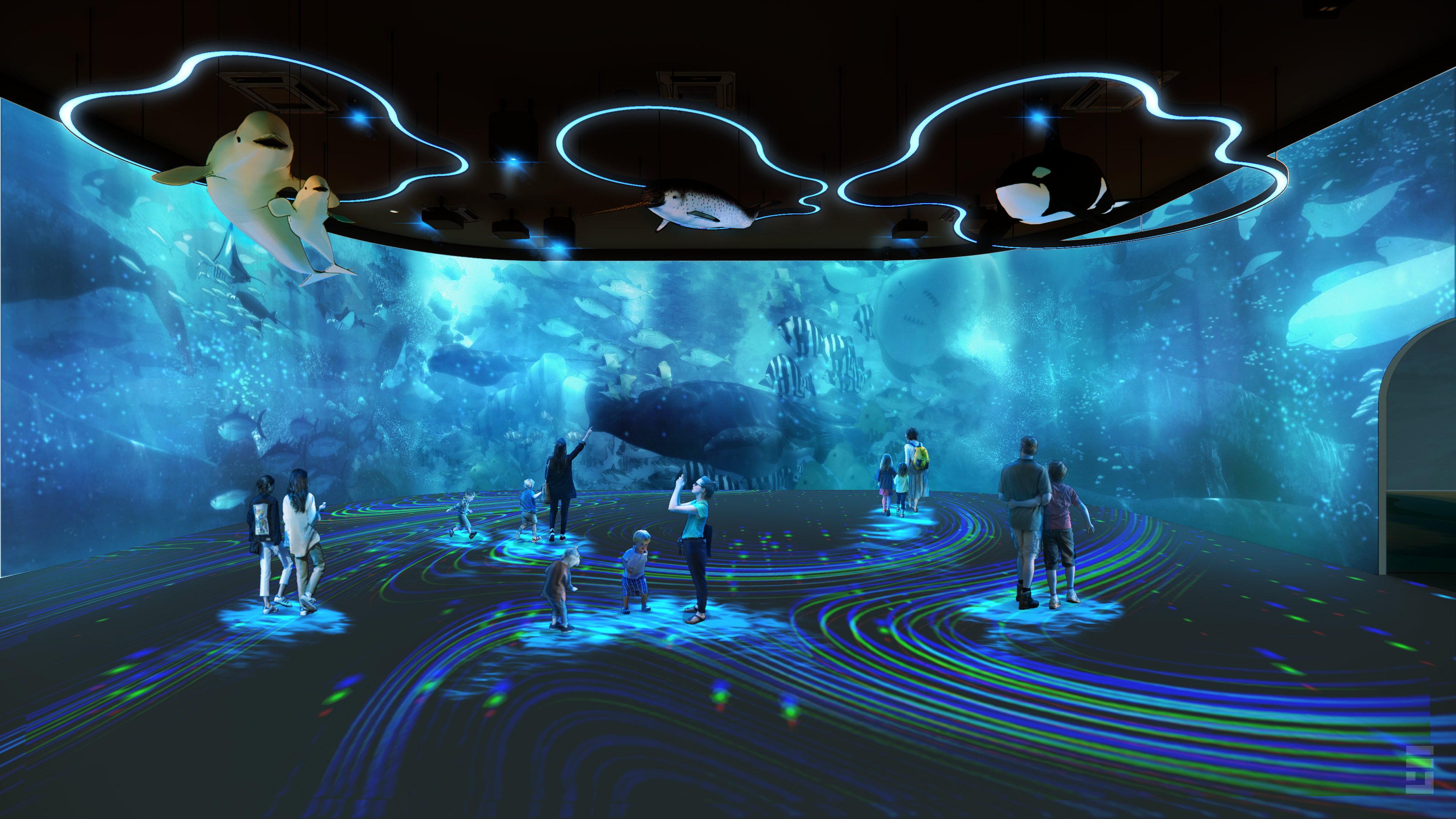 3D Render Perspective Sea Pollution Interactive Video Mapping Area