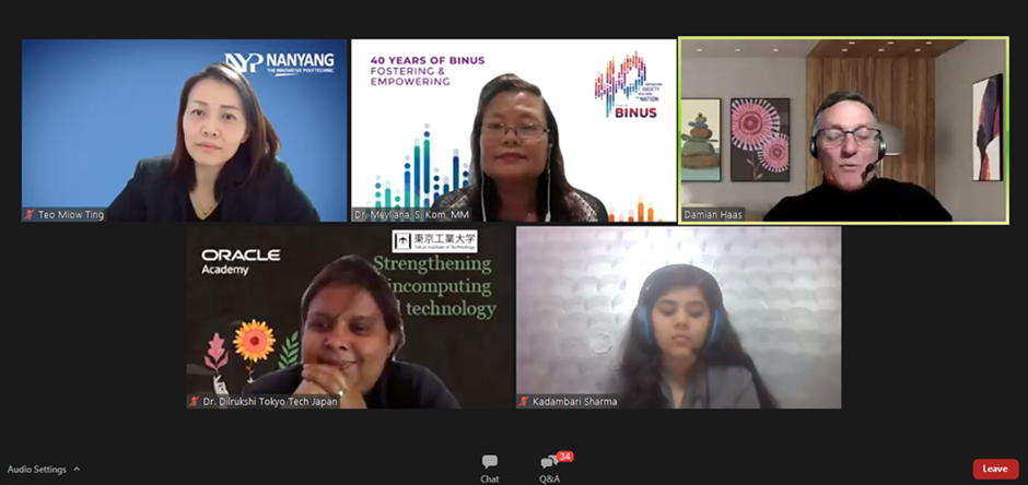 Salah satu webinar international tersebut adalah “Oracle Academy Virtual Girls in ICT Day 2021, Japan & Asia Pacific” yang menghadirkan Dr. Meyliana, S.Kom., M.M. (Vice Rector Global Employability & Entrepreneurship di BINUS UNIVERSITY) sebagai salah satu panelis. Webinar ini diadakan pada 22 April 2021 dan dimoderatori oleh Damian Haas (Regional Director, Oracle Academy Japan & Asia Pacific) dan Anuradha Sharma (Country Manager, Oracle Academy). Webinar ini membicarakan bagaimana peran wanita terhadap teknologi informasi dan komunikasi, dan tentunya menyemangati dan mendorong para wanita untuk bisa dan terjun ke dalam dunia teknologi informasi dan komunikasi. Acara dibuka oleh 3 orang, yaitu Alison Derbenwick Miller (Vice President, Oracle for Research), Dr. A.K. Garg (Director, HoD International Cooperation & Bilateral Trade, Innovation and IPR, Ministry of Electronics & Information Technology, Government of India) dan Saswati Ganguly (Global Sales & Solutions Head, EAS Oracle at Tata Consultancy Services [TCS] ).