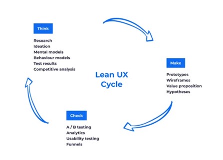 Lean UX menekankan kecepatan dan efisiensi dalam proses desain dengan melakukan iterasi cepat. Dengan mengurangi proses yang tidak perlu, desainer dapat menguji dan memperbaiki desain secara terus-menerus berdasarkan umpan balik pengguna.