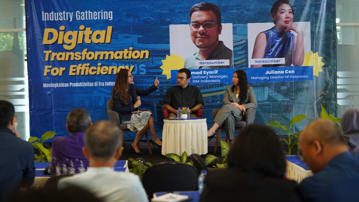 Bekasi, 5 Juni 2025 – BINUS University @Bekasi kembali mengadakan Industry Gathering dengan tema “Digital Transformation for Efficiency.” Acara ini menghadirkan dua pembicara dari perusahaan teknologi global, yaitu yakni Service Delivery PT. IBM Indonesia Ahmad Syarif dan Managing Director HP Indonesia Juliana Cen. Keduanya membagikan wawasan mengenai peran transformasi digital dalam mendorong efisiensi sekaligus inovasi di berbagai sektor industri.
