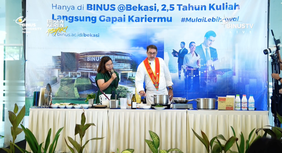 Bekasi, 3 Oktober 2025 – Suasana hangat terasa di BINUS @Bekasi saat kegiatan “Le Goût de France – Cita Rasa Prancis” digelar. Demo masak eksklusif ini dipimpin oleh Chef Richard Gillet, Wakil Presiden Disciples Escoffier International sekaligus Presiden Wilayah Asia-Pasifik, memberikan kesempatan unik bagi mahasiswa untuk memahami seni memasak ala Prancis yang elegan dan berkelas.