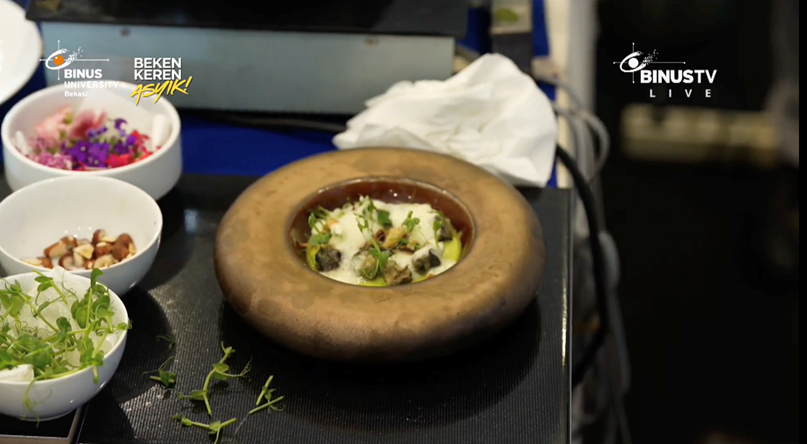 Dalam sesi demo masak ini, Chef Richard memperkenalkan hidangan klasik Prancis, escargot yang diolah dengan teknik memasak khas Prancis. Selain memperagakan setiap langkah persiapan dan proses memasak, Chef Richard juga menjelaskan filosofi di balik setiap elemen hidangan, mulai dari pemilihan bahan berkualitas, teknik memasak yang presisi, hingga penyajian yang memperhatikan detail estetika. Melalui pendekatan ini, peserta tidak hanya belajar soal rasa, tetapi juga diajak memahami bagaimana kuliner Prancis menekankan keseimbangan antara teknik, kreativitas, dan apresiasi terhadap bahan makanan.