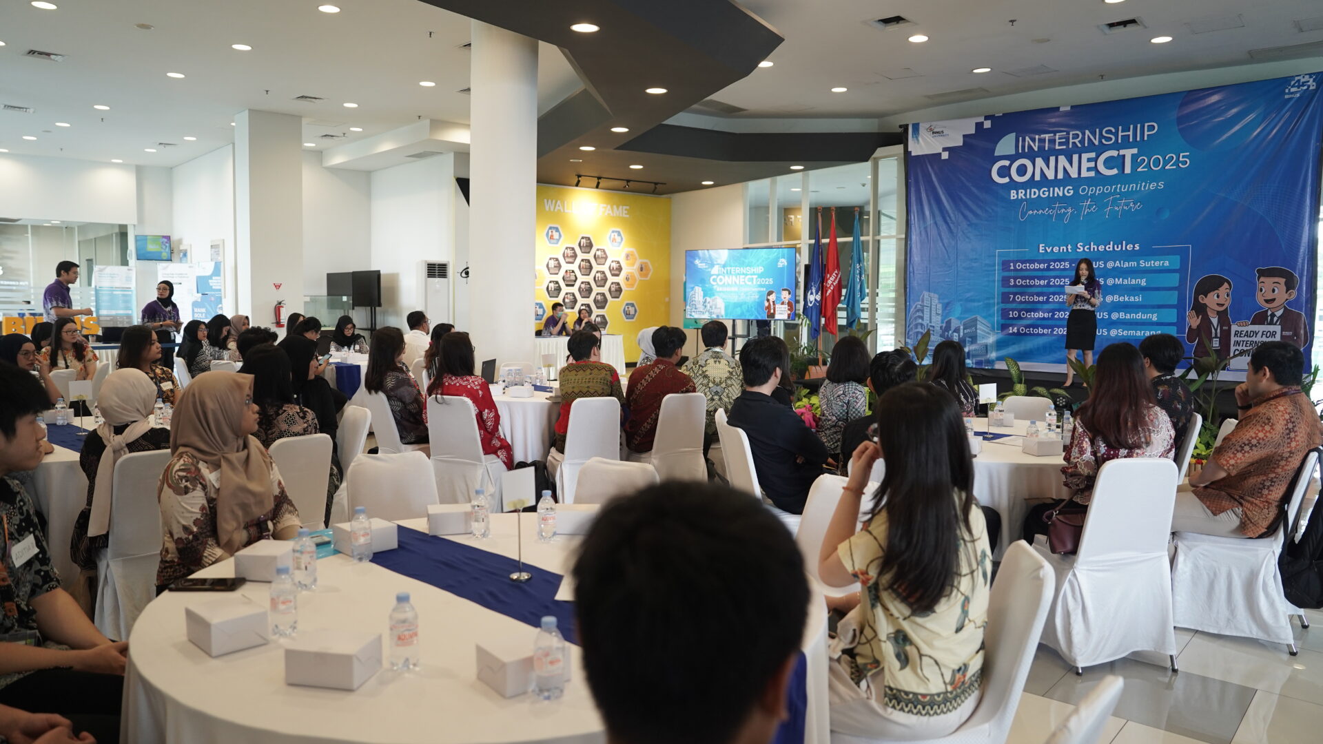 Bekasi, 7 Oktober 2025 – BINUS University @Bekasi mengadakan Internship Connect 2025 melalui Global Employability and Entrepreneurship (GEE), dengan mengusung tema “Bridging Opportunities, Connecting The Future.” Kegiatan ini menjadi sarana bagi mahasiswa untuk menjalin hubungan langsung dengan perusahaan dari berbagai sektor industri sekaligus mempersiapkan diri memasuki dunia kerja yang sesungguhnya.