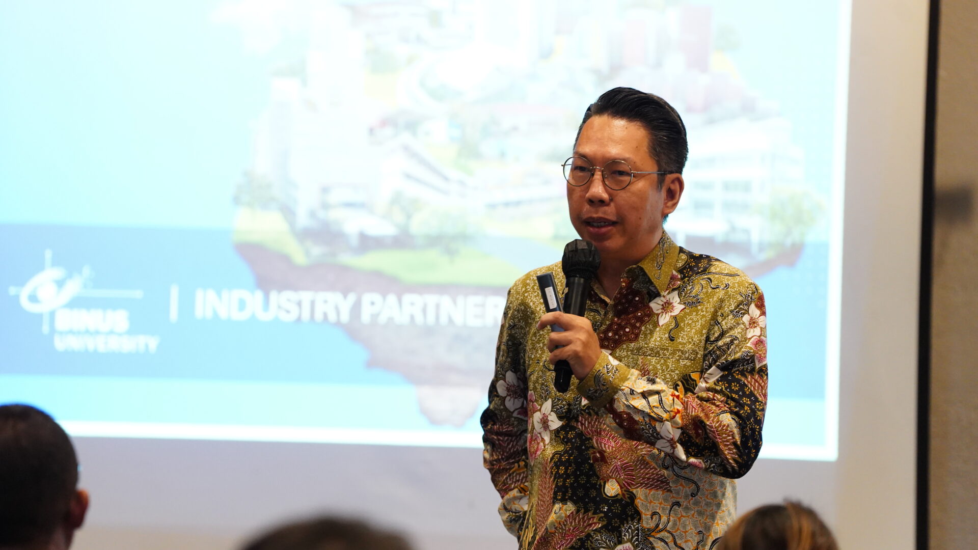 Campus Director BINUS @Bekasi, Prof. Gatot Soepriyanto, Ph.D., membuka sambutan dengan menekankan peran strategis Bekasi sebagai pusat aktivitas industri nasional. Ia menyampaikan bahwa hubungan yang kuat antara kampus dan perusahaan di kawasan ini tidak hanya membuka kesempatan bagi mahasiswa, tetapi juga membantu industri menemukan talenta yang sesuai kebutuhan. Melalui Industry Gathering ini, ia berharap terbentuk kolaborasi yang lebih intensif dan berkelanjutan.