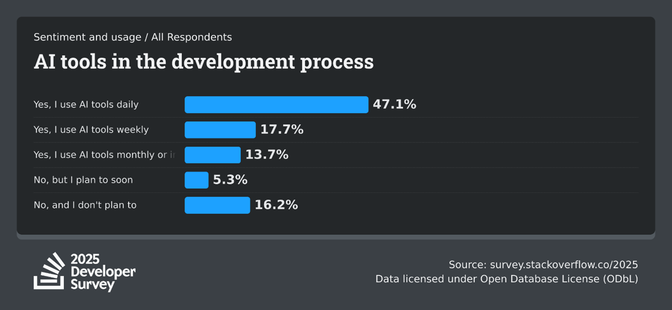 Gambar 3. Hasil survei terkait vibe coding (sumber: stackoverflow.com)
