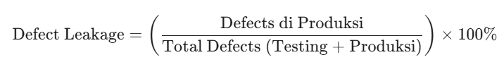 Defect Leakage mengukur persentase bug yang tidak tertangkap di environment testing dan baru ditemukan setelah rilis di production.