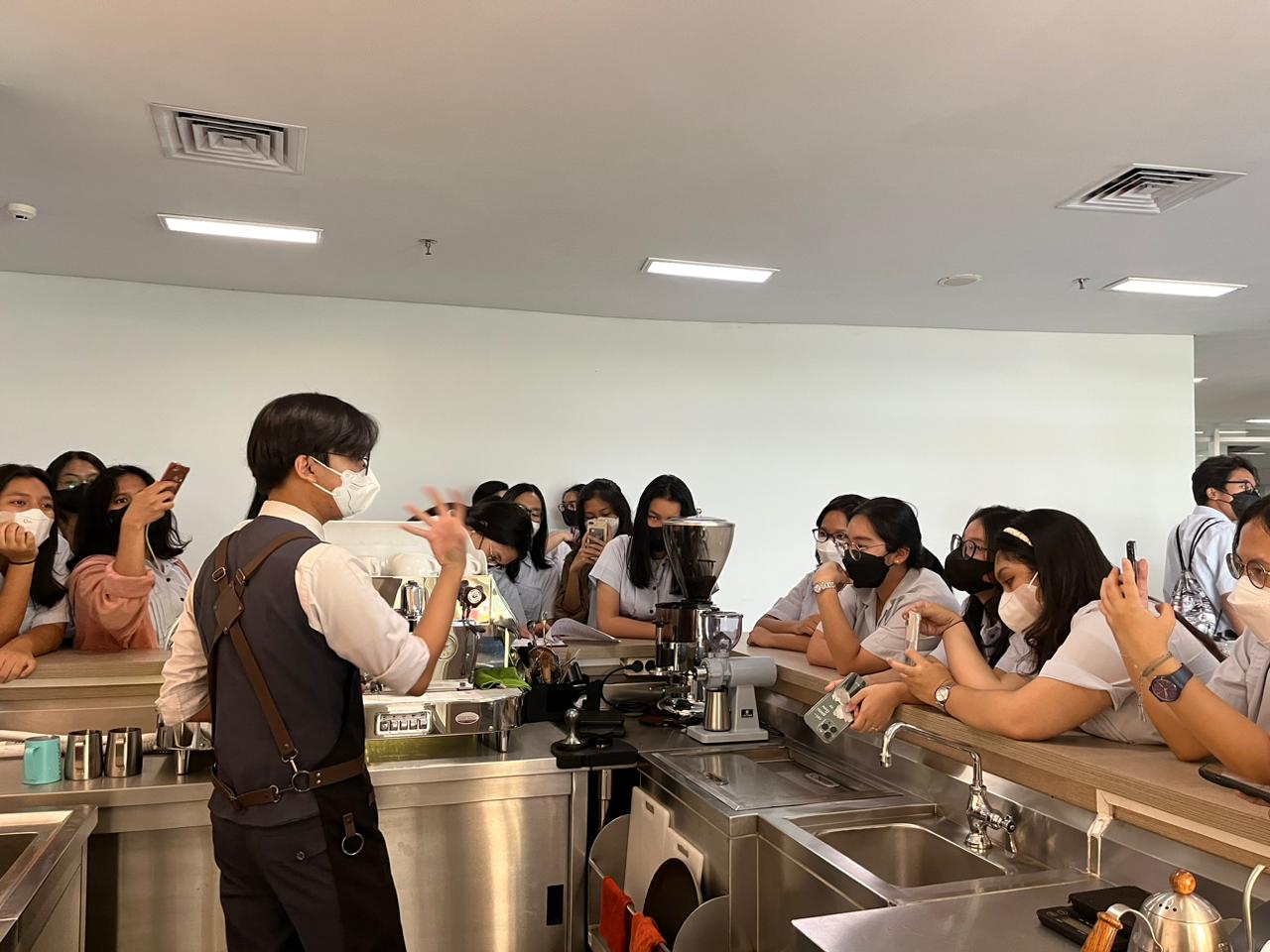 Penyuluhan kali ini diberikan kepada 35 siswi- siswi dari SMA Marsudirini pada Senin, 3 Oktober 2022 pk 08.30 hingga pk 10.00 dengan sistem hands- on dimana seluruh peserta melakukan praktik secara langsung. Penyuluhan diberikan dengan cara membagi seluruh peserta kedalam empat grup. Grup pertama belajar mengenai “Gimbab Korean Food” yang disampaikan oleh Chef Nurul Sukma Lestari (D4956) di Demo Class dan “Wok Friend Rice” oleh Chef Sarim di Lab Kitchen BHM. Sedangkan grup kedua belajar mengenai “Table Set Up” yang disampaikan oleh Rachel Dyah Wiastuti (D4856) di Lab Resto- Bar BHM. Grup ketiga belajar mengenai “Coffee Knowledge” yang disampaikan oleh Agung Gita Subakti dan Jiva (B2024) di Cafe BHM. Grup keempat belajar mengenai “Bed Making” yang disampaikan oleh Aditya Pratomo. Keempat grup pun bertukar kelas yang akhirnya semua peserta mendapatkan semua topik pembelajaran secara personal. Di akhir sesi topik memasak tidak lupa tentunya menyantap bersama hasil masakan yang sudah dipraktekkan tadi.