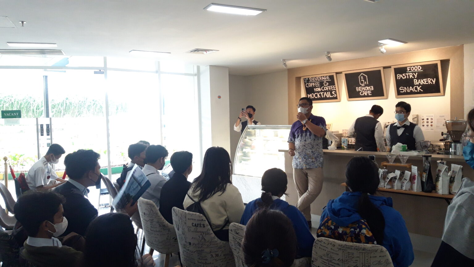 Penyuluhan kali ini diberikan kepada 25 siswi kelas XII pada Rabu, 8 Februari 2023 pk 10.30 hingga pk 12.30 dengan sistem hands- on dimana seluruh peserta melakukan praktik secara langsung. Terdapat 3 topik yang dipelajari pada kegiatan ini. Pertama topik culinary yang disampaikan di Lab Kitchen BHM, dimana peserta memasak secara langsung dengan menu “Gimbab” yang ditutor oleh para mahasiswa BHM B2023 (Bhama & Jevanus) dan B2025 (Helvira, Nazwa, Key, Pamela). Kedua topik beverage yang disampaikan di Lab Cafe BHM yang ditutor oleh mahasiswa BHM B2023 (Fatur, Vincent, Dendih) dan B2025 (Nugroho) dimana peserta diberikan ilmu dasar tentang kopi, cara menggunakan coffee machine, serta membuat espreso serta minuman berbahan dasar kopi lainnya. Ketiga topik pastry bakery yang disampaikan di Lab Pastry BHM yang ditutor oleh mahasiswa BHM B2023 (Hana, Putu, Salsa) dan B2025 (Odel, Karin, Darryl) dimana peserta mendapatkan pengetahuan dasar tentang puff pastry serta membuat produk kreasi mereka sendiri.