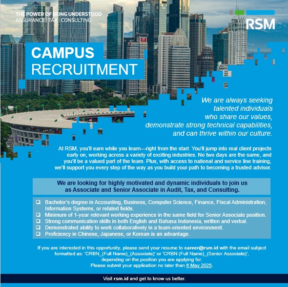 #CampusHiring #RSMIndonesia #BINUSUniversity #KarierMasaDepan #Audit #Tax #Consulting