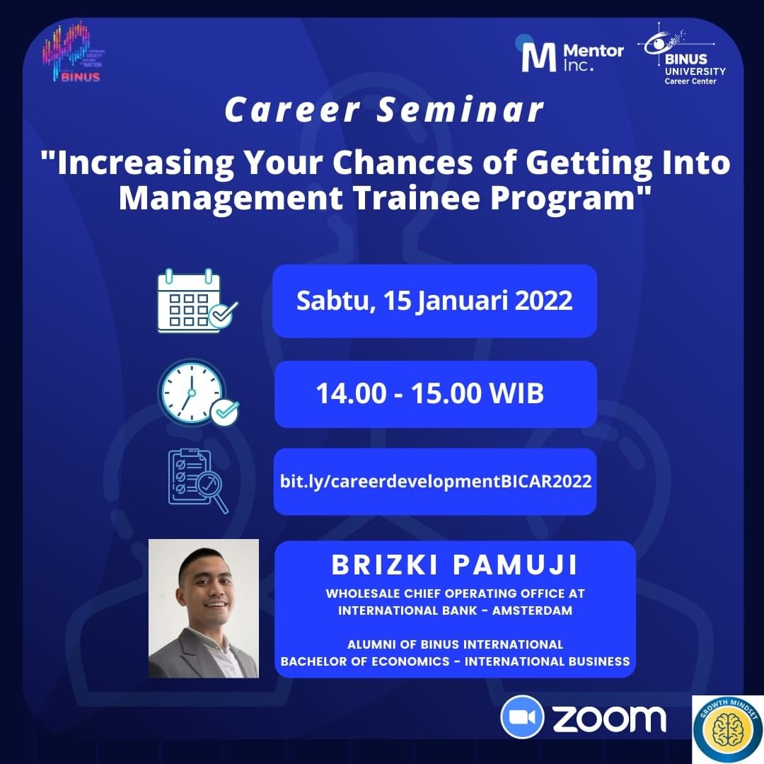 Tema Acara : “Increasing Your Chances of Getting Into Management Trainee Program” with MentorInc
