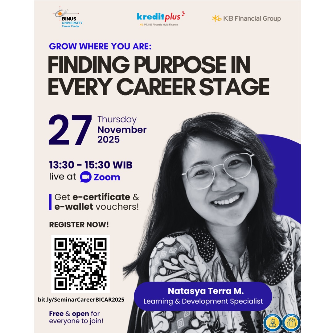 Acara ini gratis unuk Binusian! Daftar sekarang yukk bit.ly/SeminarCareerBICAR2025