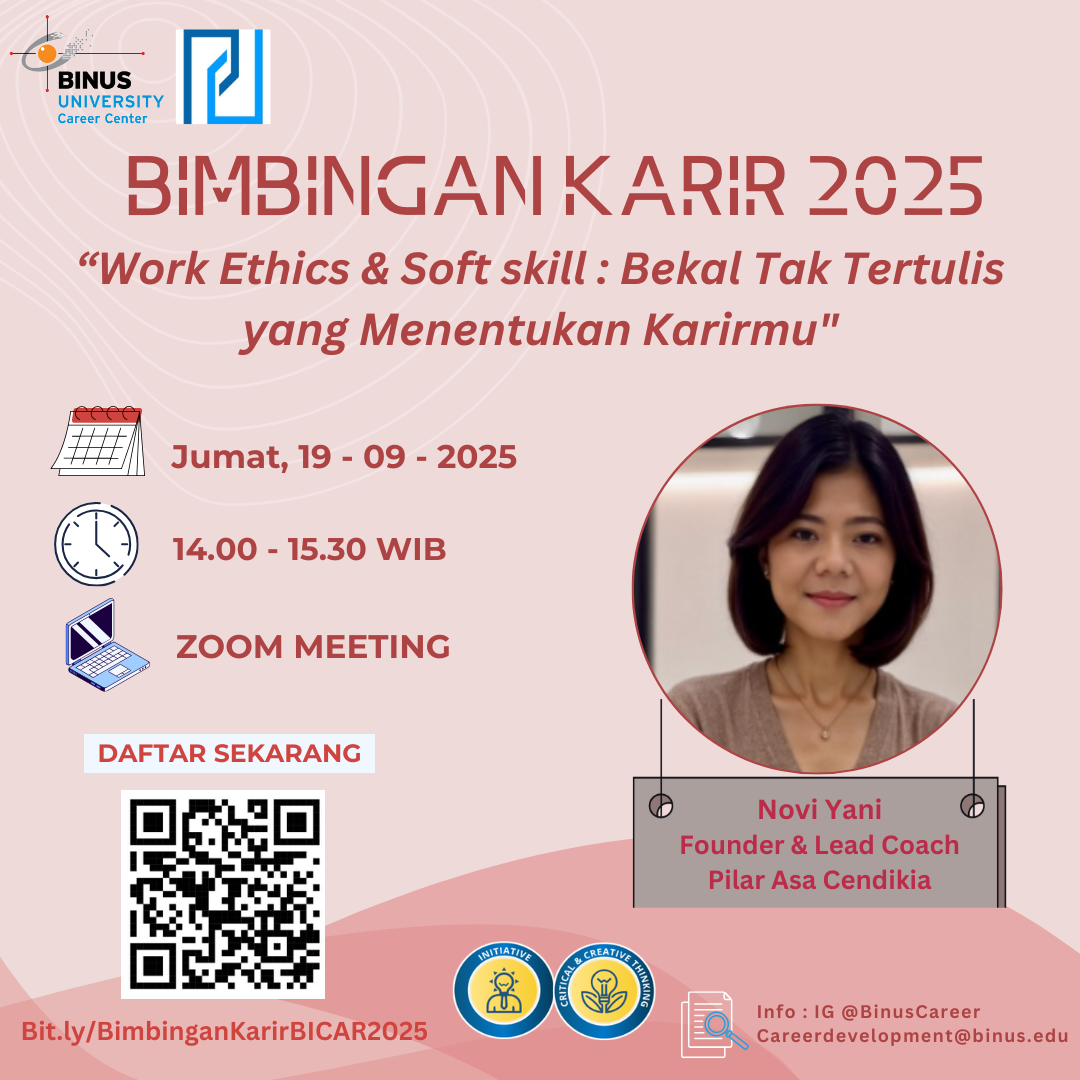 Dalam perjalanan karier, ada banyak hal yang bisa kita siapkan, mulai dari pengetahuan, keterampilan teknis, hingga pengalaman. Namun, jangan lupa jika Soft skill dan Work Ethics juga merupakan bekal yang tak tertulis tapi bisa menentukan arah kariermu! Penasaran kan seperti apa tips & triknya? Yuk ikuti Bimbingan Karir ini.