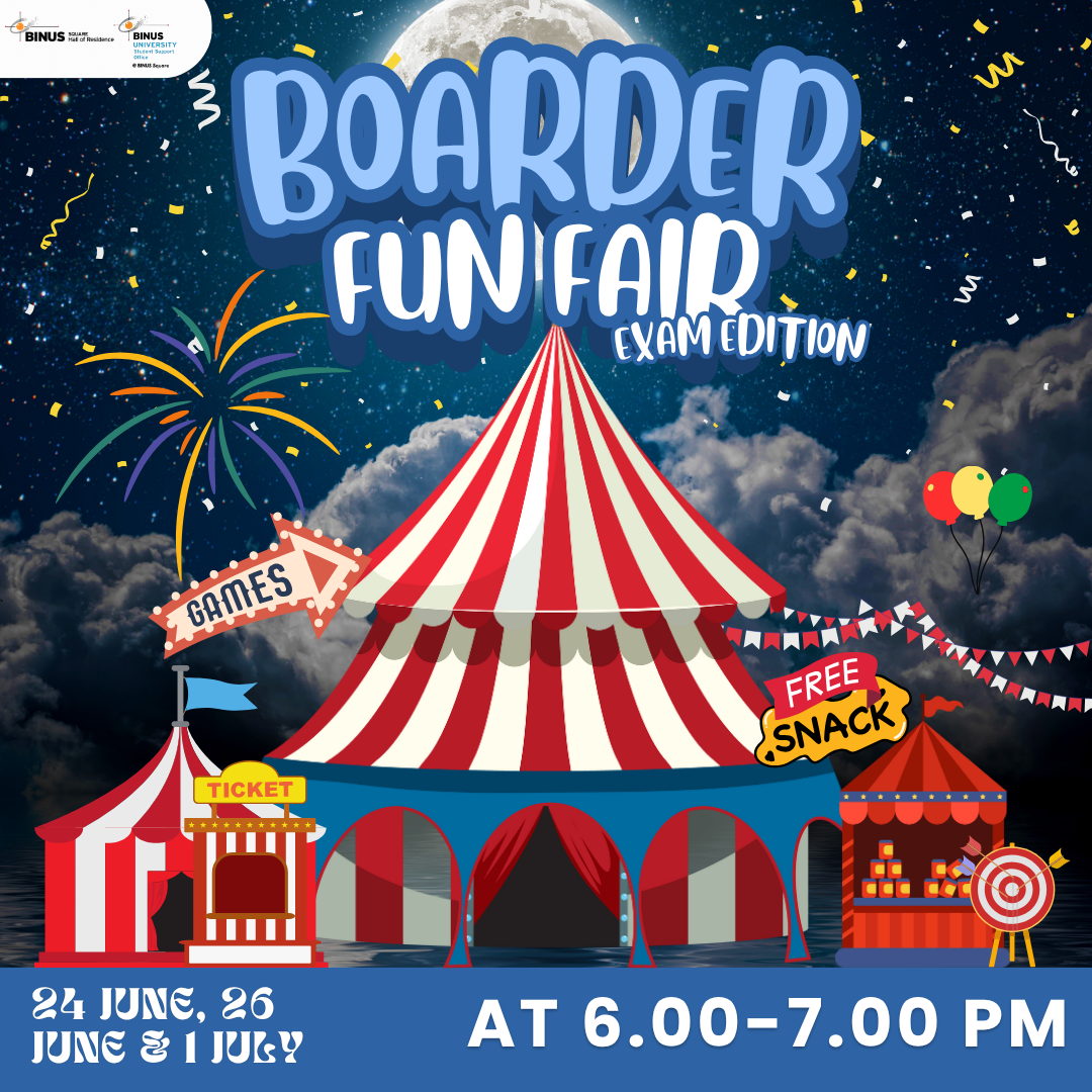 Hiburan seru di tengah persiapan ujian akhir semester? BINUS Square ajak recharge semangatmu bareng di spot Boarder Fun Fair: Exam Edition!