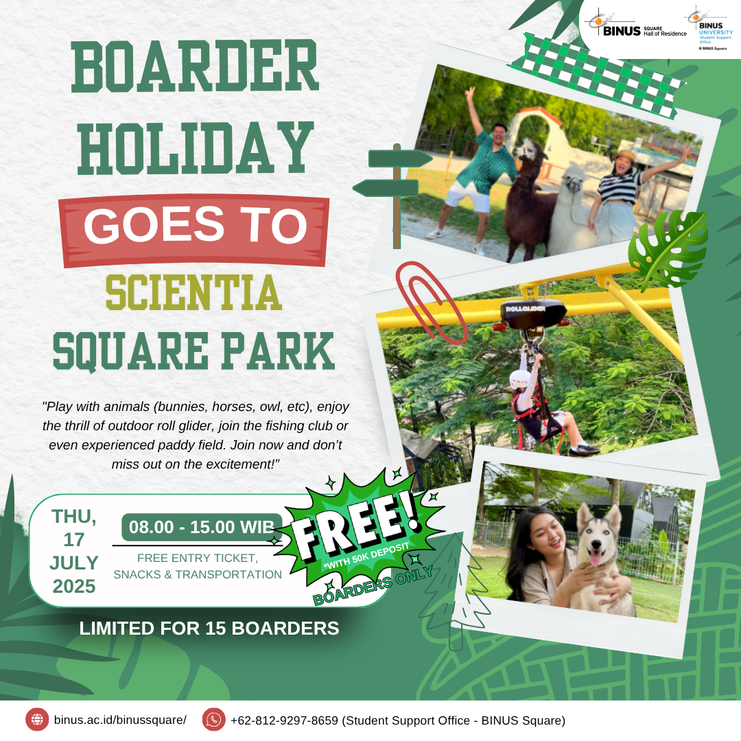 Hi Boarders! Liburan tapi bingung mau kemana? BINUS Square ngajak kamu untuk merasakan pengalaman seru di Scientia Square Park!