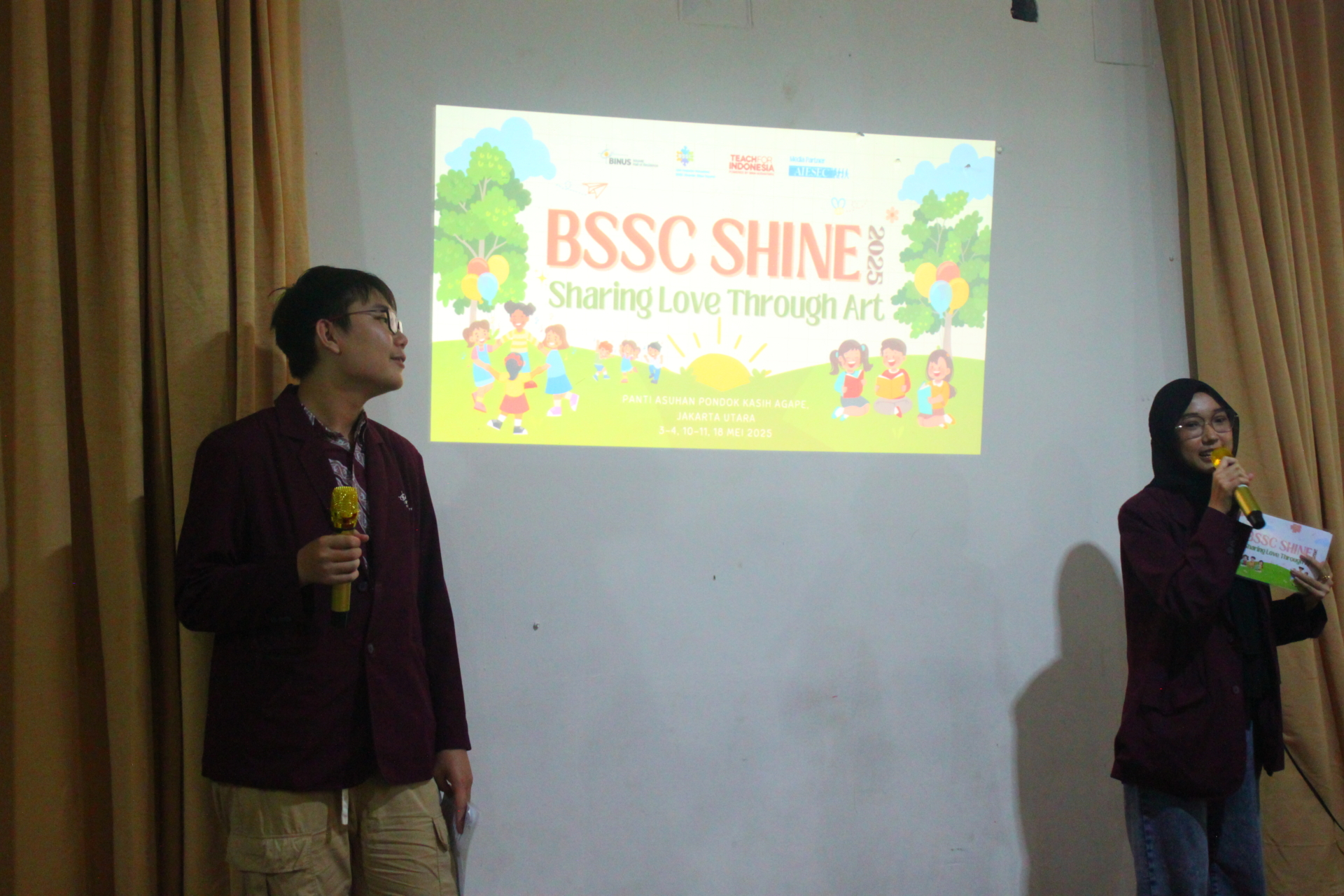 Jakarta, 3 May 2025 – BSSC SHINE is an annual event organized by BINUS Square Student Committee (BSSC) to bring boarders to share love and joy with children. This years BSSC SHINE was held at Pondok Kasih Agape orphanage. This year’s theme is “Sharing Love Through Art”. This event aims to provide a platform for emotional expression and self-love through creative means. It served as a response to the challenges many people like volunteers and orphaned children face in expressing emotions, especially love, due to trauma, lack of support, or low self-confidence. Through activities such as drawing, writing, and performing, participants were encouraged to explore new ways of expressing care and love. The event was held over five days at Pondok Kasih Agape orphanage, specifically on Saturday, May 3rd; Sunday, May 4th; Saturday, May 10th; Sunday, May 11th; and Sunday, May 18th, 2025.