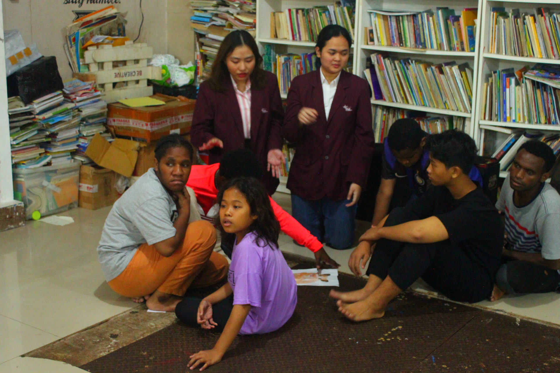 The first day of BSSC SHINE 2025’s began with excitement and a heartfelt anticipation. The event officially opened with a prayer by one of the volunteer and warm greetings by the MC, followed by a series of welcoming speeches from a representative from the Pondoh Kasih Agape orphanage, Stephanie Alexandria as the Project Manager of BSSC SHINE 2025, Felicia Susanty as the Chairman of BSSC 15th Presidency and Muhammad Raziva Ramza Aziz, S,E. as the representative from SSO BINUS Square. This was followed by an activity called “Find Your Team”. This activity was made to encourage interaction between the volunteers and the children. Children and volunteers were made into groups by matching puzzle pieces which were distributed randomly to all children. The children would search for their future volunteer leader by searching for the volunteer that had a matching puzzle as them, forming the foundation for the next 4 days shared experiences. After the teams had gathered, there’s a short game session called “kereta belok” where the children gathered in their groups then formed in line by placing their hands on the shoulder of the person in front of them, two volunteers will then give directions to the participants during the game. One volunteer will provide the correct instructions based on a story being narrated, while the other will intentionally give incorrect directions to confuse the players. The event was followed by a theory and sharing session with the theme “Keep Being a Good Person”. The volunteers presented their powerpoints and showed some videos related to the theme, in the end there were brief sharing sessions where some children shared their conclusion on the topic or videos. These sessions provide meaningful space for connection, learning, and support.